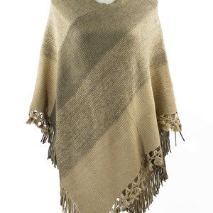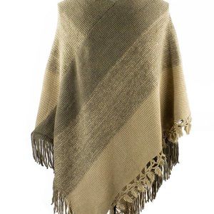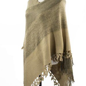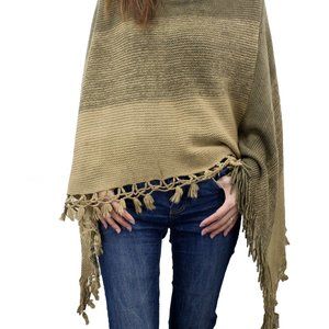 Khaki Olive Fringe Tassel Poncho Sweater Pullover