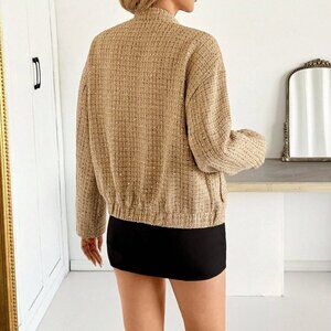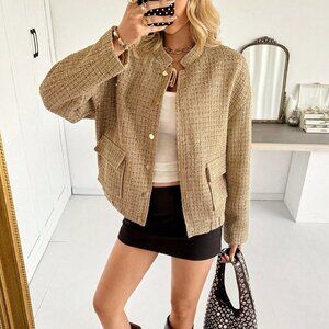 Khaki Preppy Women's Gold Sequin Tweed Jacket