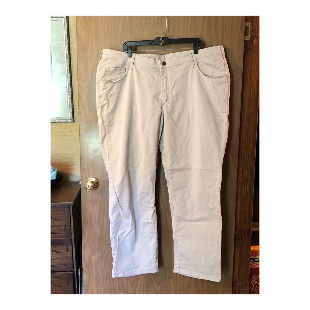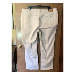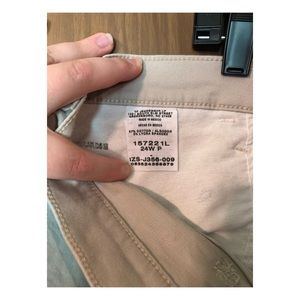 These are a 24W and have only been worn once. They do have a miss-stitched belt look in the rear as is shown. They are from a pet friendly and smoke free home.