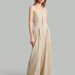 Khaki Sexy Women's Backless Strap Halter Jumpsuit