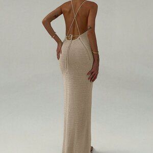Khaki Sexy Women's Sleeveless Backless Casual Long Dress