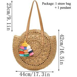 - This stylish straw handbag is made of straw, environmental protection. With handle strap, ideal as a tote bad and shoulder bag, practical and fashionable.