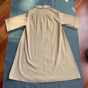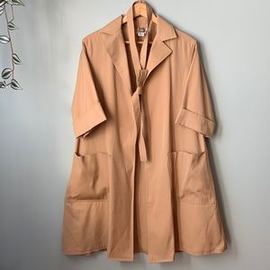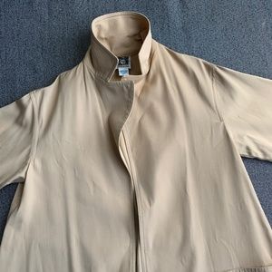 A vintage lightweight coat by Anne Klein is available in khaki tan/camel color that provides a very relaxed fit.