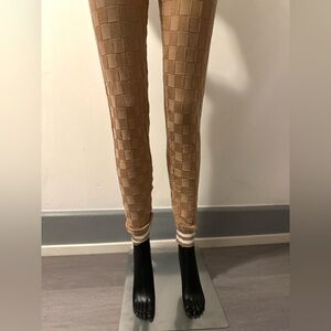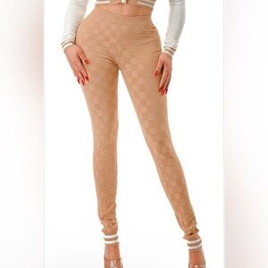 Khaki Two Piece Knit Varsity Stye Jacket Top High Waisted Knit Leggings Joggers