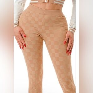 -High Waisted Textured Varsity Pant with Elastic Rib Knit Waistband