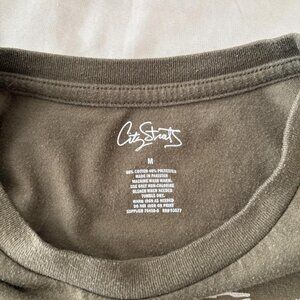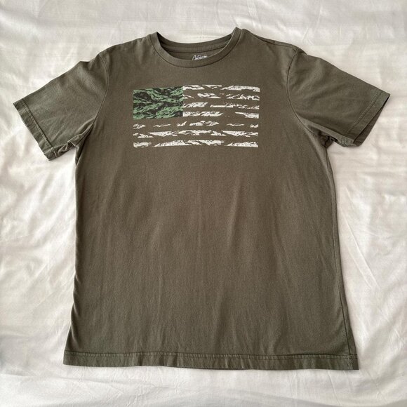 Khaki and green camo flag tee. Women's size M. City Streets tag.