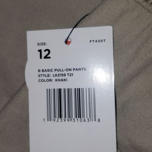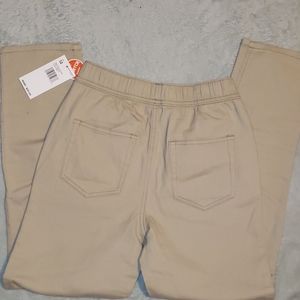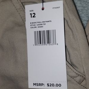 Khaki, basic pull-on pants.