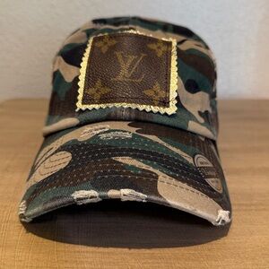 Khaki camouflage distressed Cap with Louis Vuitton vintage Patch