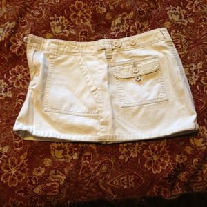 This is a khaki mini skirt with flap pockets in the back and Trouser pockets in the front. I got this in Australia so the sizing is different , the tag says 10 but it fits like a 4. This skirt is adorable and really fun to wear.