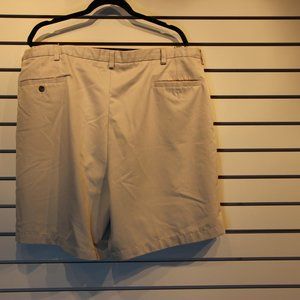 Stuck in the bottom drawer, nearly new Haggar Khaki shorts, elastic on waistband at sides.