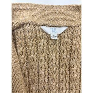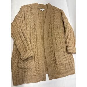 Khaki tan chunky knit cardigan sweater women large (12-14) open front boho