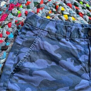 Khakis By Gap Boyfriend Roll-Up Shorts in blue camo. Features slash pockets and belt loops. Preowned in very good condition, no holes or stains.