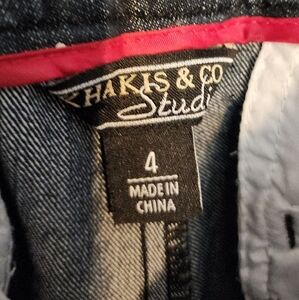 Khakis & Co Studio women's size 4 trendy wide leg Capris Bermuda blue denim jeans in excellent condition. No stains, no rips, no snags, no missing buttons or hook, and the zipper is in excellent working condition. SKU0204