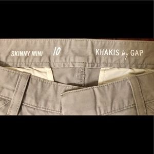 Khakis by GAP skinny mini size 10 cropped . Gray color and in great condition! Looks new! Only worn once. The modern design makes this khaki great for any spring and summer outfit.