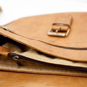 Constructed with supple organic leather, tanned naturally without the use of harmful chemicals, this satchel was hand crafted by Moroccan artisans in a small family workshops using traditional tools and techniques.