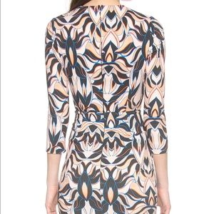 A bold Just Cavalli dress in a unique swirl print. A keyhole shows a peek of skin. Hidden zip and centered slit in back. 3/4 sleeves. Partial lining.