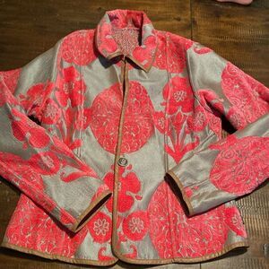 Khangura Front Button reversible Jacket Small open Front Blazer Embroidered. Pics show both sides of jacket