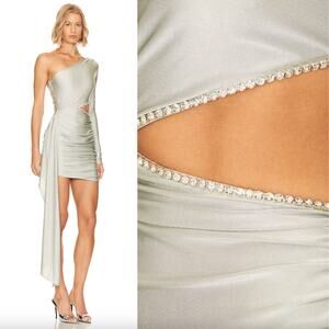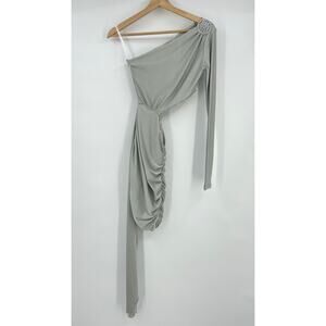 Khanum's | NWT One Shoulder Sash Mini Dress in Silver Party Rhinestone Trim XS