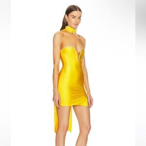 Khanums Strapless Sash Mini Dress in Sunshine Yellow