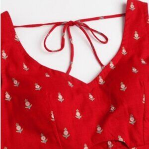Maroon and gold-toned solid ready to wear blouse, has a v-neck, sleeveless