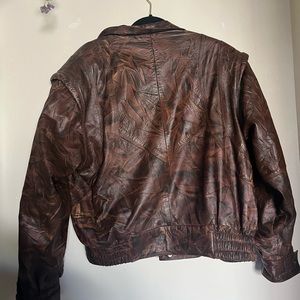 Genuine leather jacket in men’s size xl Great condition, no flaws and hardly worn. Best guess is that it’s from the 80s. Unique detail on the shoulder.