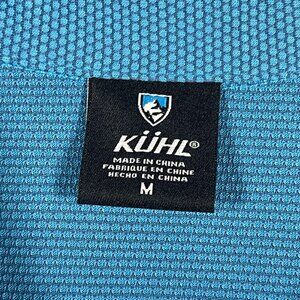 Kühl Blue Polo Shirt Waffle Texture Mens Medium W/ Button Pockets & Logo Patch
