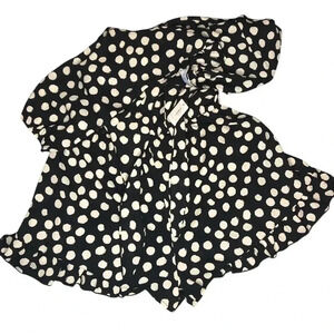 NWT- Black & Cream Dot Ruffle Romper with Plunging Neckline, 1/4 Sleeves, Elastic Waistline, Ruffle Trim at Hem