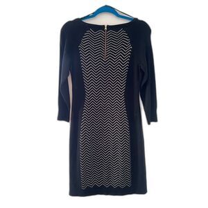 Black and gold sweater dress. size small. Materials pic. Back zipper. 3/4 sleeves.
