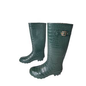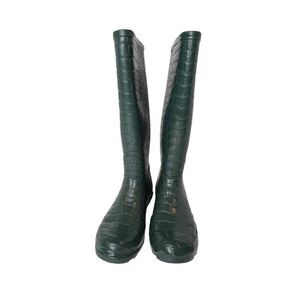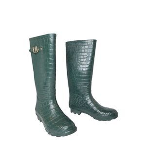 Khombu BW1208 Crocodile Tall Rubber Rain Boot Green Cheetah Print Lining sz 9. Waterproof Designed to help protect against heavy weather conditions, including water, rain, and snow. No original box.