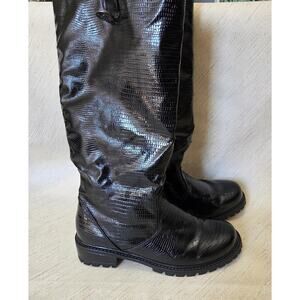 Khombu Black Calf High Zip Up Boots Woman's Size 9M Style-SNAKE-PU