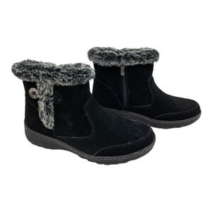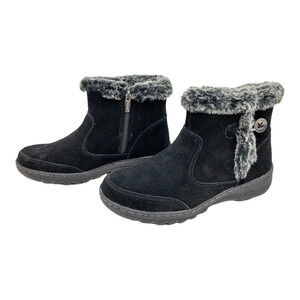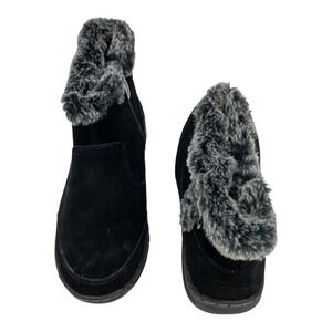 Khombu Black Iris Suede Leather All Weather Faux Fur Collar Ankle Booties 9