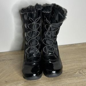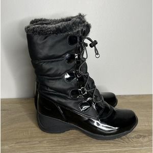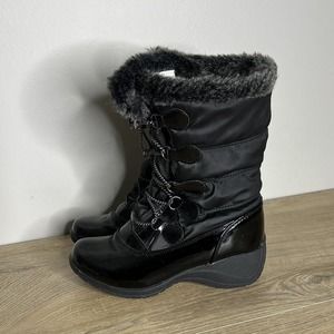 Khombu Boots Womens 6 Adelle Black Snow Winter Boots Faux Fur Lined Neutral