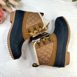 Khombu Dixie Cold Weather Faux Fur Lined Winter Boots Tan Navy Size 6