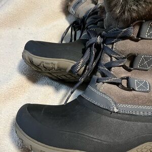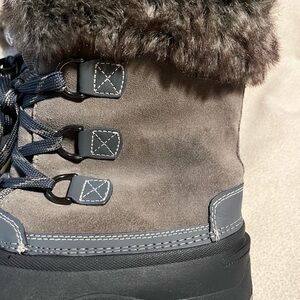 Khombu Faux Fur Trim Leather Upper Winter Boots Sz10