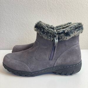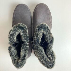 Khombu Gray Suede Ankle Boots Faux Fur Cuff Women’s 8 Winter Booties Double Zip