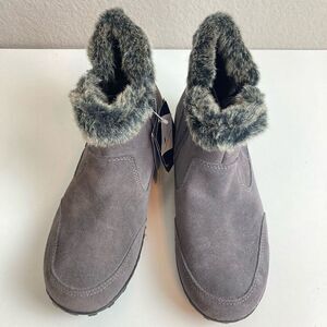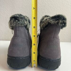 Khombu Gray Suede Leather Ankle Boots with Faux Fur Cuff Winter Boots