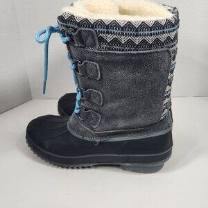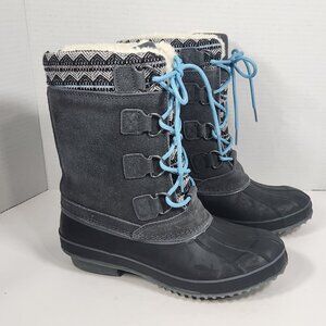 Khombu Gray Woman's Boots with Blue Laces Size 8