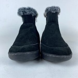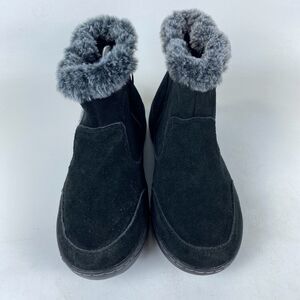 Khombu Iris Ankle Winter Boots Womens Size 8 Black Suede Faux Fur Side Zipper