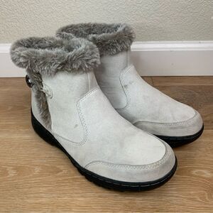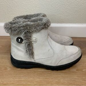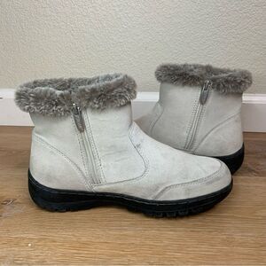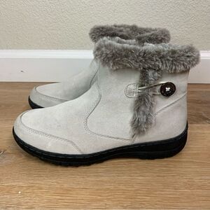 Khombu Iris Plush Faux Fur Gray Suede Winter Ankle Boots