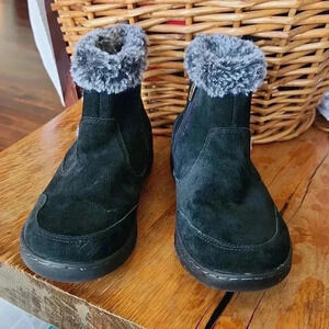 Preowned. Excellent condition. No excessive use or wear. There are no lingering odors. Zipper side. Faux fur, suede leather upper, rubber soles.