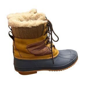 Khombu Kathleen Boots Faux Fur Duck Booties Waterproof Brown Blue Size 11