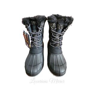 Khombu Kerigan Thermolite Cold Rated Waterproof Faux Fur Trim Lace Up Boots Sz 6
