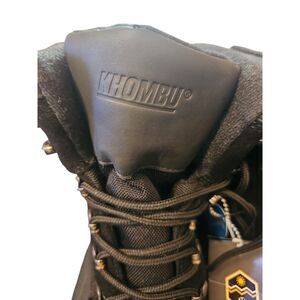 Stay warm and dry in harsh winter conditions with these black Khombu Men's Size 13M Waterproof Boots. Designed for durability and comfort, they feature: Insulated interior, heavy duty outsole and rugged rubber bottom for water resistance. 13 inch toe to heel. 2inch heel. 6 inches from the top of the heel to the top of the ankle. 5inches is the widest part of the shoe