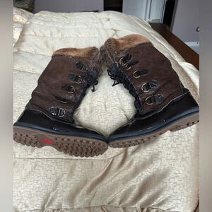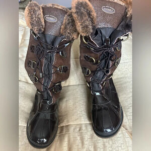 Khombu Quechee Stingray Brown Faux Fur Waterproof Winter Snow Boots Size 9.5M