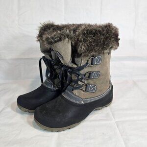 Khombu Snow Boots Women Size 9 Waterproof Slope Leather Winter Faux Fur Lined
