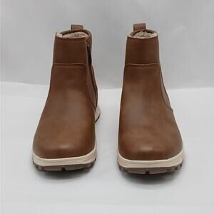 Khombu Women's Ankle Boots Size 8M Brown Faux Leather Sherpa Fleece Lined Hiking Shoes Cozy Minimalist Outdoor
