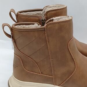 Khombu Women's Ankle Boots Size 8M Brown Faux Leather Sherpa Fleece Lined Hiking