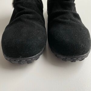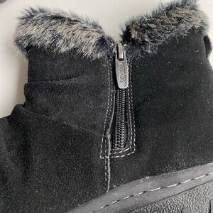 Khombu Womens Black Leather Faux Fur Ankle Boots Zip-up Winter Size 6M