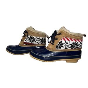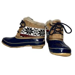 Khombu Women's Jazzy Snow Winter Duck Boots Size 7M Leather Sweater Steel Shank