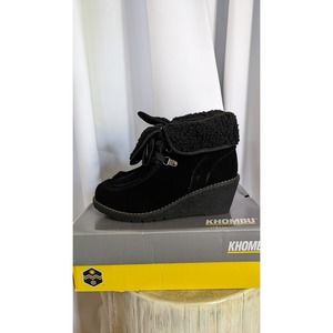 Khombu Womens Sienna Fold Over Waterproof Wedge Booties Size 7M